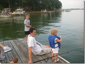 Check out this huge fish Lily caught. Actually Austin caught, but being the sweet cousin that he is, he threw it back in and let her reel it in. Look how sweet he is helping her.